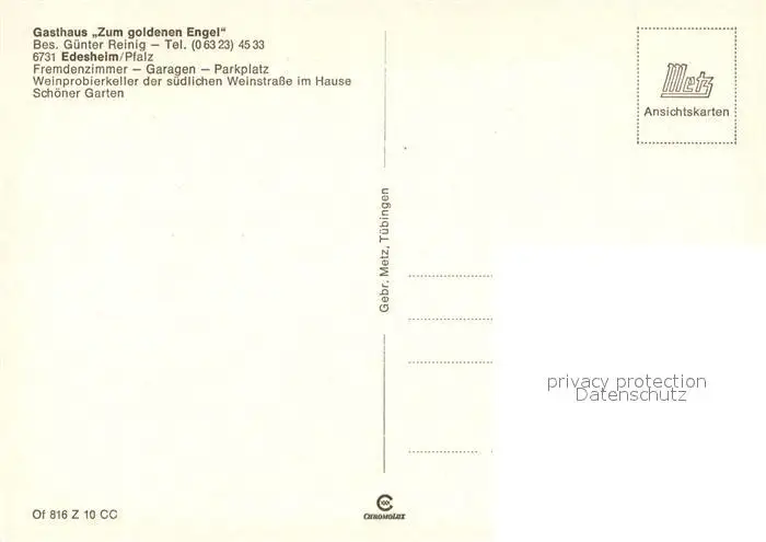 Edesheim_Pfalz Gasthaus Zum goldenen Engel Restaurant Edesheim Pfalz postalisch nicht gelaufen nach 1965 Erhaltung siehe scans [FriedD77] Frierer