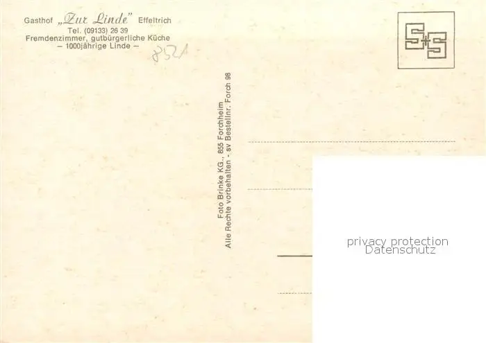 Effeltrich Gasthof Zur Linde Effeltrich postalisch nicht gelaufen nach 1965 Erhaltung siehe scans [PaolaD17] PaolPID1