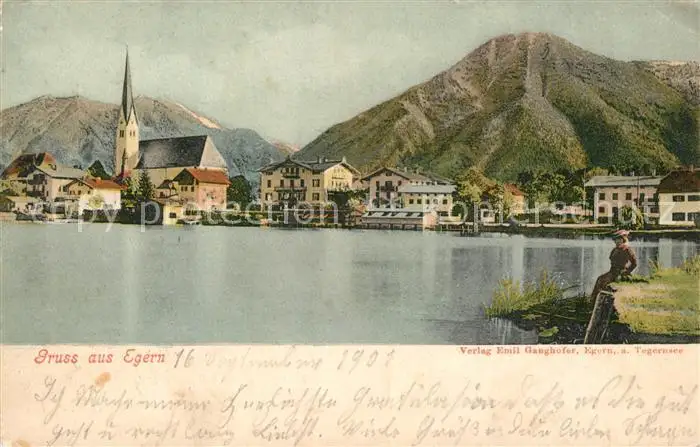 Egern_Tegernsee Panorama Kirche Egern Tegernsee postalisch gelaufen 1901 Erhaltung siehe scans [KathaD81] Kathoren
