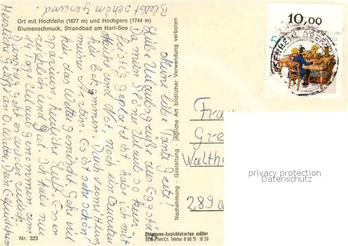 Eggstaett_Oberbayern Panorama mit Hochfelln und Hochgern Chiemgauer Alpen Blumenschmuck Strandbad Hartsee Eggstaett_Oberbayern postalisch gelaufen nach 1965 Erhaltung siehe scans [FriedD77] Frierer