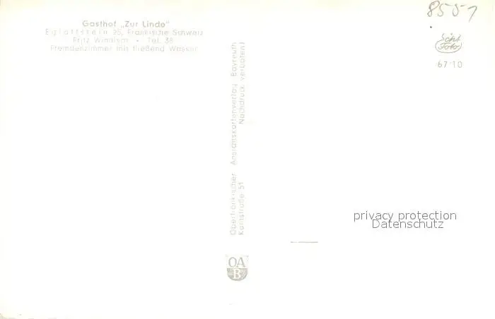 Egloffstein Gasthaus Zur Linde Egloffstein postalisch nicht gelaufen 1921-1965 Erhaltung siehe scans [KathaD81] Kathoren