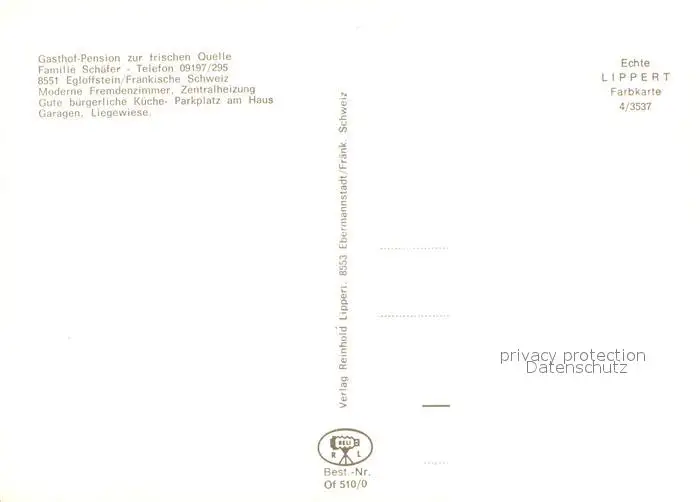 Egloffstein Gasthof Pension Zur frischen Quelle Fraenkische Schweiz Egloffstein postalisch nicht gelaufen nach 1965 Erhaltung siehe scans [FriedD77] Frierer
