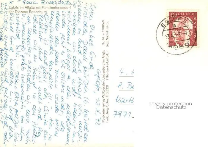Eglofs_Argenbuehl Alpenpanorama Fliegeraufnahme Familienferiendorf der Dioezese Rottenburg Rathaus Marktplatz Badesee Eglofs Argenbuehl postalisch gelaufen 1973 Erhaltung siehe scans [FriedD77] Frierer