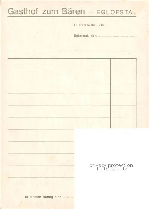 Eglofstal Gasthof zum Baeren Eglofstal postalisch nicht gelaufen 1921-1965 Werbekarte (keine Postkarte) Erhaltung siehe scans [WerneD78] Werbekarte (keine Postkarte) WernPID7