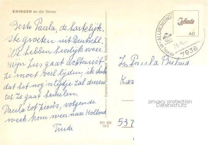 Ehingen_Donau Fliegeraufnahme Ehingen Donau postalisch gelaufen nach 1965 Erhaltung siehe scans [WerneD78] WernPID7