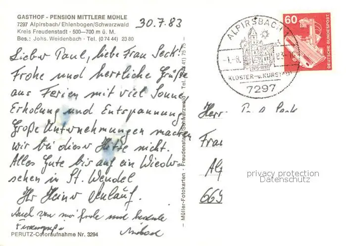 Ehlenbogen Gasthof Pension Mittlere Muehle Gastraeume Ehlenbogen postalisch gelaufen 1983 Erhaltung siehe scans [WerneD78] WernPID7