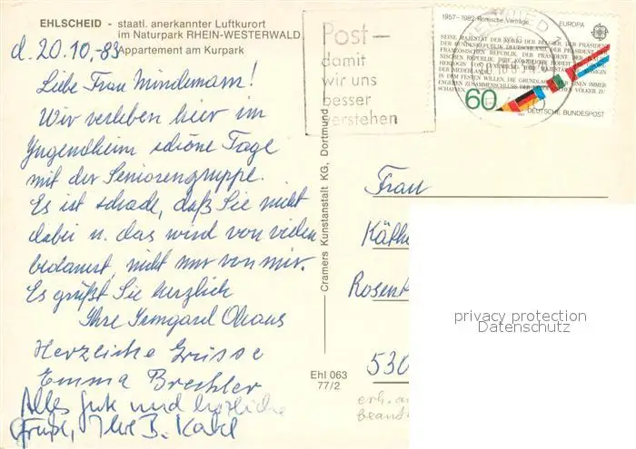 Ehlscheid Appartementhaus am Kurpark Luftkurort Naturpark Rhein-Westerwald Ehlscheid postalisch gelaufen 1983 Erhaltung siehe scans [FriedD77] Frierer