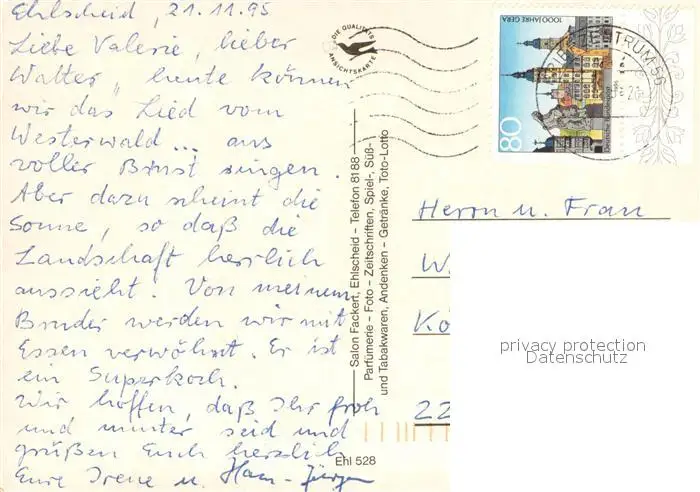 Ehlscheid Teilansichten Luftkurort im Westerwald Freibad Brunnen Ehlscheid postalisch gelaufen 1995 Erhaltung siehe scans [FriedD77] Frierer