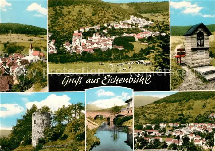 AK / Ansichtskarte Eichenbuehl_Unterfranken Panorama Burgruine Partie an der Erf Bildstock Eichenbuehl Unterfranken