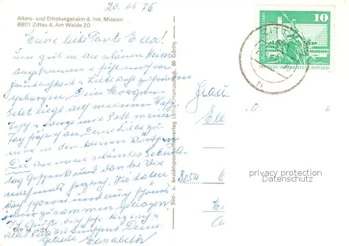 Eichgraben_Zittau Bethelemstift Alters- und Erholungsheim der Inneren Mission postalisch gelaufen 1976 Erhaltung siehe scans [FriedD77] Frierer