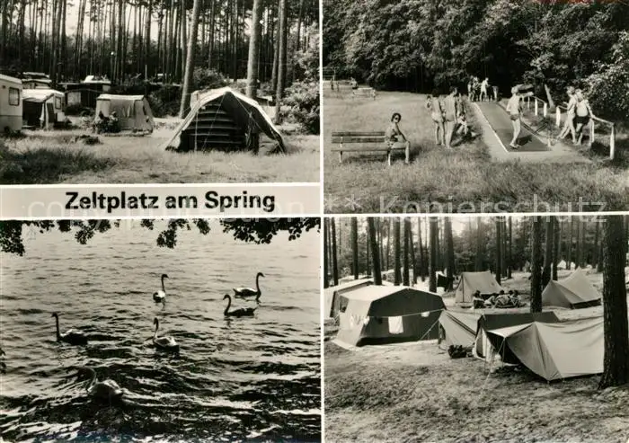 AK / Ansichtskarte Eichhorst_Eberswalde Zeltplatz am Spring Schwaene Bouleplatz Eichhorst_Eberswalde