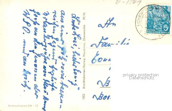 Eichhorst_Eberswalde am Werbellinsee Eichhorst_Eberswalde postalisch gelaufen 1958 Erhaltung siehe scans [WerneD78] WernPID7