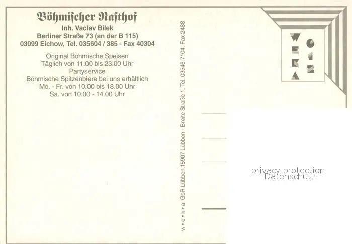 Eichow Boehmischer Gasthof Restaurant Koch Eichow postalisch nicht gelaufen nach 1965 Erhaltung siehe scans [FriedD77] Frierer