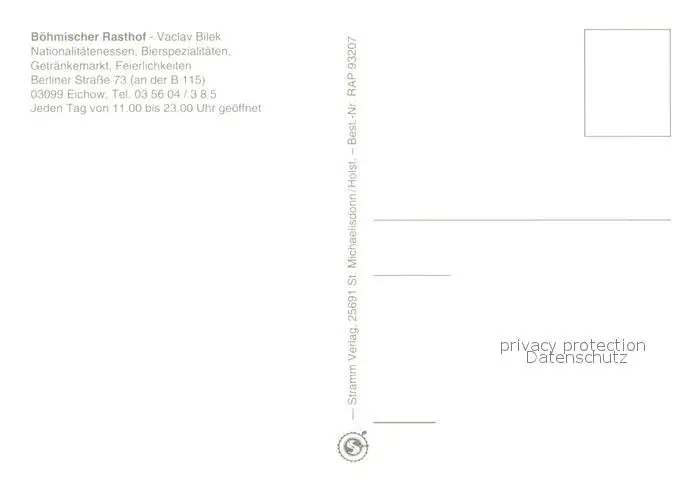 Eichow Boehmischer Rasthof Restaurant Eichow postalisch nicht gelaufen nach 1965 Erhaltung siehe scans [FriedD77] Frierer