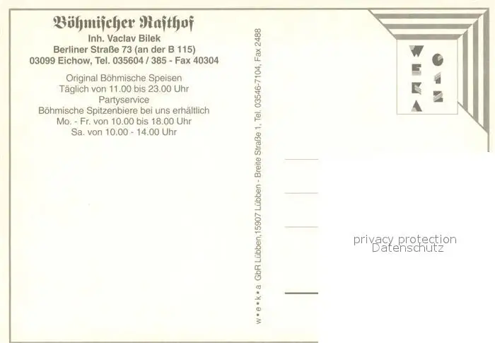 Eichow Boehmischer Rasthof Restaurant Kueche Eichow postalisch nicht gelaufen nach 1965 Erhaltung siehe scans [FriedD77] Frierer