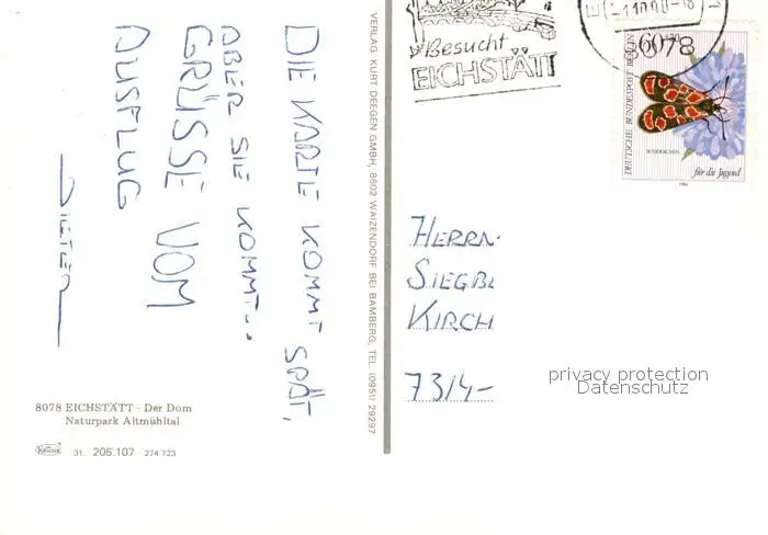 Eichstaett_Oberbayern Dom Eichstaett_Oberbayern postalisch gelaufen nach 1965 Erhaltung siehe scans [PaolaD17] PaolPID1