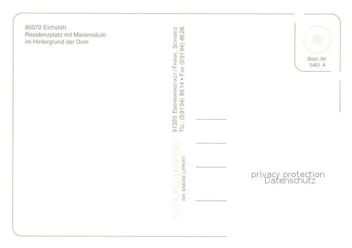 Eichstaett_Oberbayern Residenzplatz Mariensaeule Dom Eichstaett_Oberbayern postalisch nicht gelaufen nach 1965 Erhaltung siehe scans [PaolaD17] PaolPID1