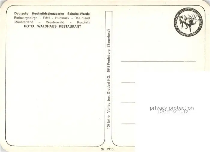 Eifel_Region Dt Hochwildschutzparke Schulte Wrede Hotel Waldhaus Restaurant Eifel Region postalisch nicht gelaufen nach 1965 Erhaltung siehe scans [WerneD78] WernPID7