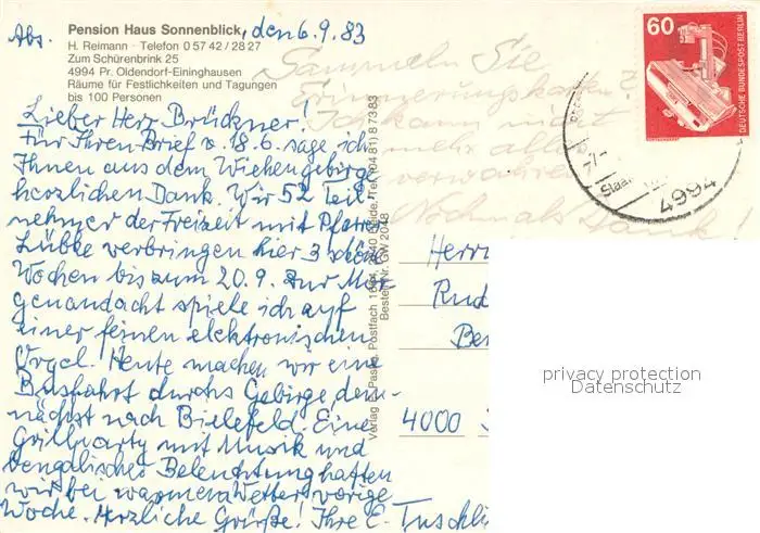 Eininghausen Pension Sonnenblick Ruine Limberg Nonnenstein Aussichtsturm Gruener See Wappen Eininghausen postalisch gelaufen 1983 Erhaltung siehe scans [FriedD77] Frierer