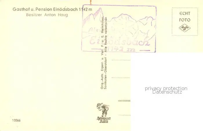 Einoedsbach Gasthof Pension Einoedsbach Einoedsbach postalisch nicht gelaufen 1921-1965 Erhaltung siehe scans [WerneD78] WernPID7
