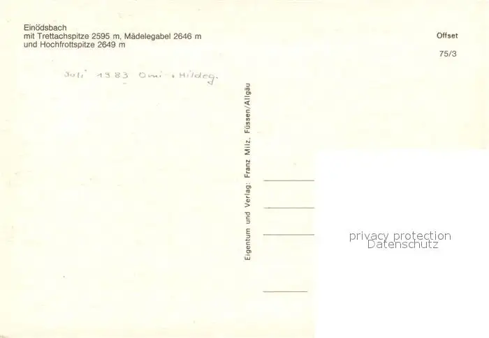 Einoedsbach mit Trettachspitze Maedelegabel und Hochfrottspitze Einoedsbach postalisch nicht gelaufen nach 1965 Erhaltung siehe scans [WerneD78] WernPID7