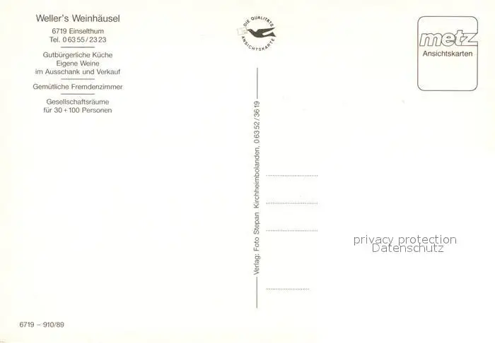 Einselthum Wellers Weinhaeusel Einselthum postalisch nicht gelaufen nach 1965 Erhaltung siehe scans [LiesaD40] LiesID40
