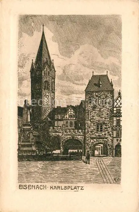 Eisenach_Thueringen Karlsplatz Luther Denkmal Zeichnung Kuenstlerkarte Eisenach Thueringen postalisch nicht gelaufen 1921-1965 Erhaltung siehe scans [FriedD77] Frierer