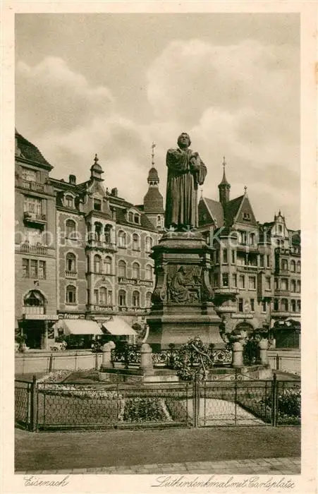 AK / Ansichtskarte Eisenach_Thueringen Lutherdenkmal und Carlsplatz Kupfertiefdruck Eisenach Thueringen