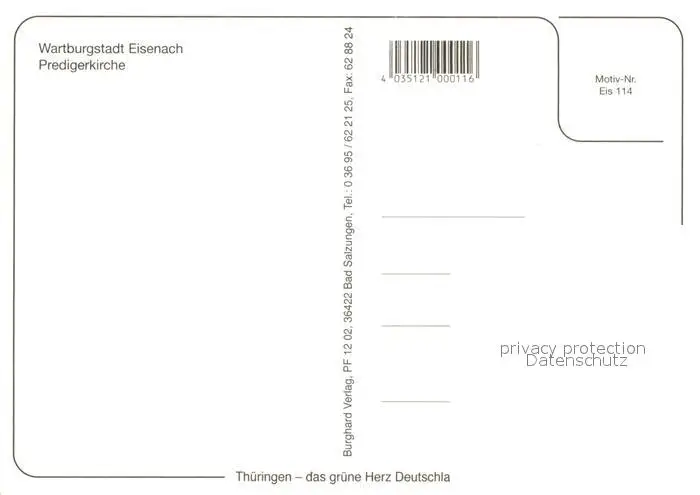 Eisenach_Thueringen Predigerkirche Eisenach Thueringen postalisch nicht gelaufen nach 1965 Erhaltung siehe scans [WerneD78] WernPID7