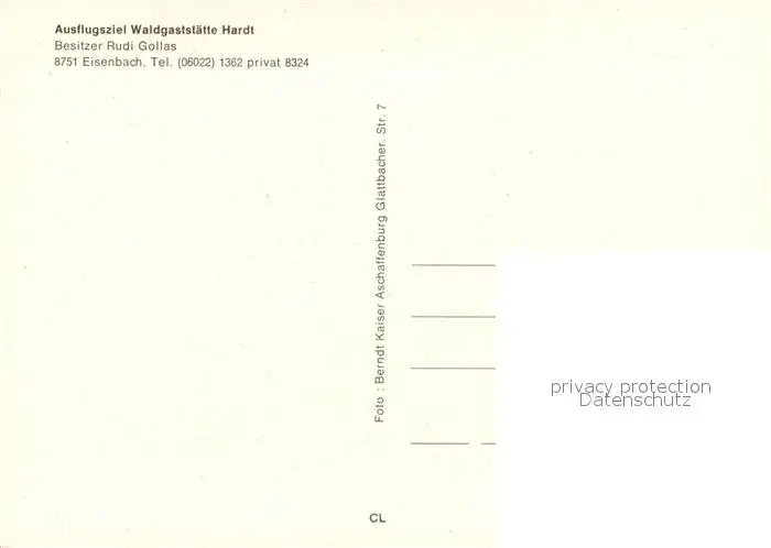 Eisenbach_Unterfranken Ausflugsziel Waldgaststaette Hardt Eisenbach Unterfranken postalisch nicht gelaufen nach 1965 Erhaltung siehe scans [KathaD81] Kathoren