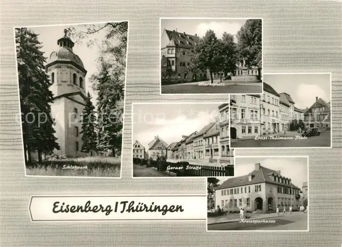 AK / Ansichtskarte Eisenberg_Thueringen Marktplatz Geraer Strasse Kreissparkasse Schlosspark Eisenberg Thueringen
