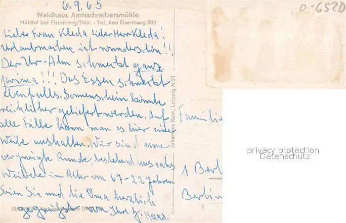 Eisenberg_Thueringen Waldhaus Amtsschreibersmuehle im Muehltal Eisenberg Thueringen postalisch nicht gelaufen 1965 Erhaltung siehe scans [FriedD77] Frierer
