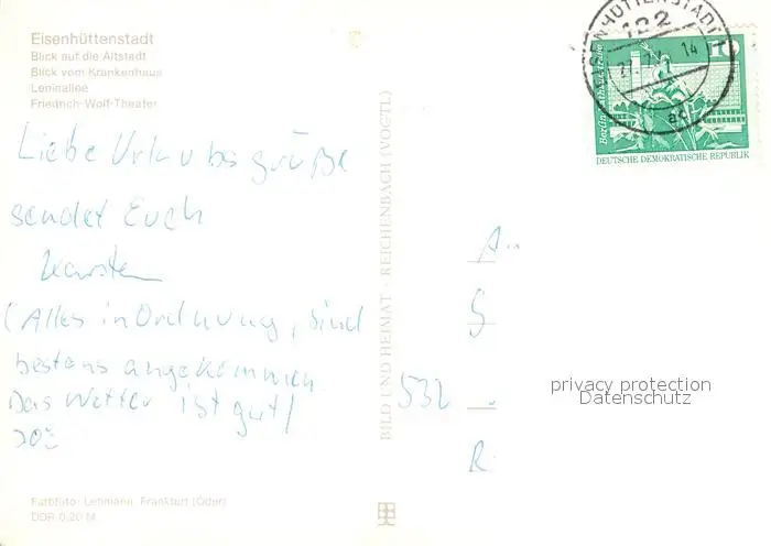 Eisenhuettenstadt Altstadt Ortsansicht Leninallee Friedrich Wolf Theater Eisenhuettenstadt postalisch gelaufen 1977 Erhaltung siehe scans [WerneD78] WernPID7