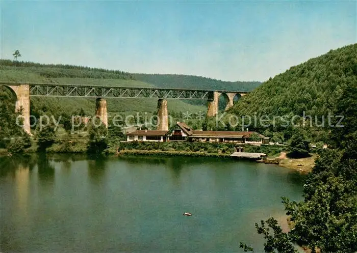 AK / Ansichtskarte Eiswoog Gasthof Forelle mit Eisenbahnbruecke Fliegeraufnahme Eiswoog