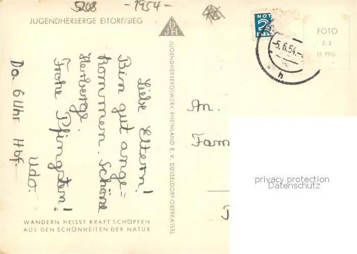 Eitorf Jugendherberge Eitorf postalisch gelaufen 1954 Erhaltung siehe scans [WerneD78] WernPID7