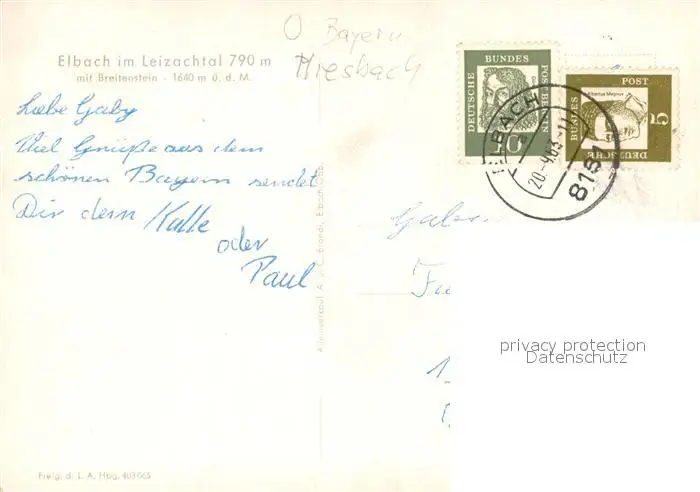 Elbach_Miesbach Fliegeraufnahme mit Breitenstein Elbach Miesbach postalisch gelaufen 1963 Erhaltung siehe scans [WerneD78] WernPID7