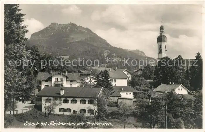 AK / Ansichtskarte Elbach_Miesbach Ortsansicht mit Kirche Blick zum Breitenstein Elbach Miesbach