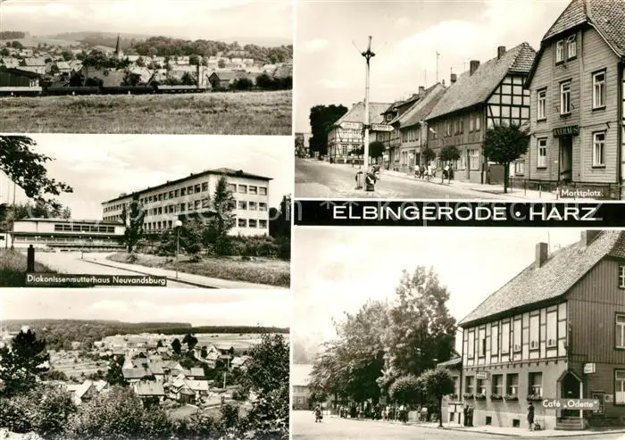 AK / Ansichtskarte Elbingerode_Harz Panorama Marktplatz Diakonissenmutterhaus Neuvandsburg Cafe Odette Elbingerode Harz