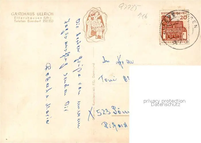 Elfershausen_Unterfranken Gaestehaus Ullrich Garten Elfershausen Unterfranken postalisch gelaufen nach 1965 Erhaltung siehe scans [FriedD77] Frierer