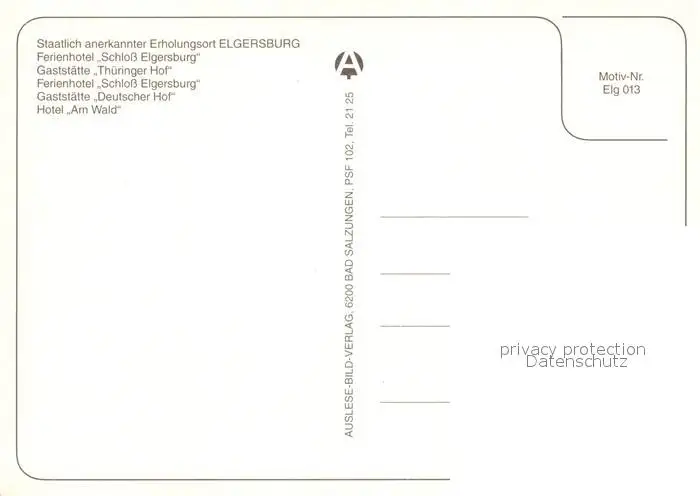 Elgersburg Ferienhotel Schloss Elgersburg Gaststaette Thueringer Hof Gaststaette Deutscher Hof Hotel am Wald Elgersburg postalisch nicht gelaufen nach 1965 Erhaltung siehe scans [WerneD78] WernPID7