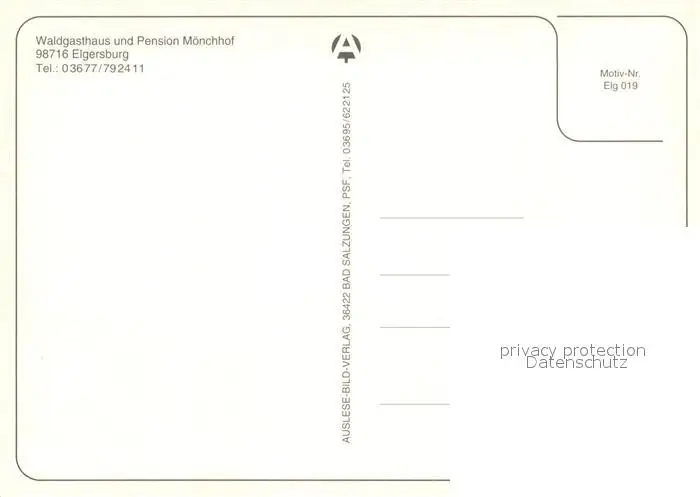 Elgersburg Waldgasthaus Pension Moenchhof Partie am Wasser Waldweg Wappen Elgersburg postalisch nicht gelaufen nach 1965 Erhaltung siehe scans [FriedD77] Frierer