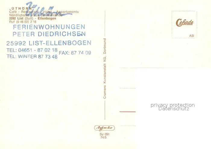 Ellenbogen_Sylt Cafe Restaurant Hotel uethoern Fliegeraufnahme Ellenbogen_Sylt postalisch nicht gelaufen 1974 Erhaltung siehe scans [FriedD77] Frierer