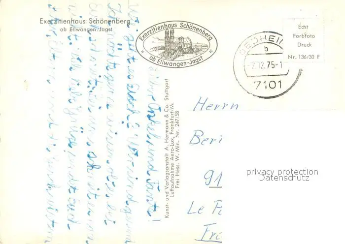 Ellwangen_Jagst Exerzitienhaus Schoenenberg Fliegeraufnahme Ellwangen_Jagst postalisch gelaufen 1975 Erhaltung siehe scans [WerneD78] WernPID7