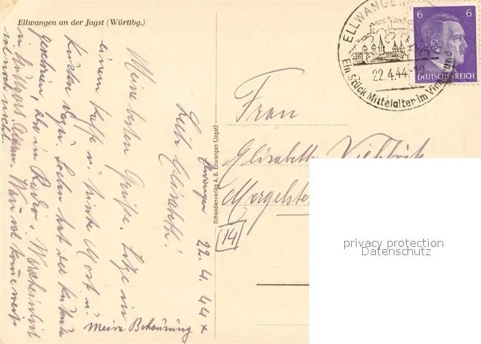 Ellwangen_Jagst Kirche Panorama Ellwangen_Jagst postalisch gelaufen 1944 Erhaltung siehe scans [FriedD77] Frierer