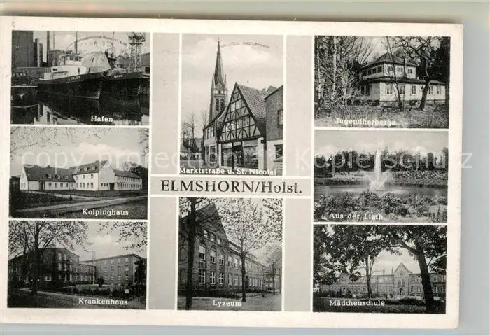 AK / Ansichtskarte Elmshorn Hafen Kolpinthaus Jugendherberge Krankenhaus Lyzeum Elmshorn
