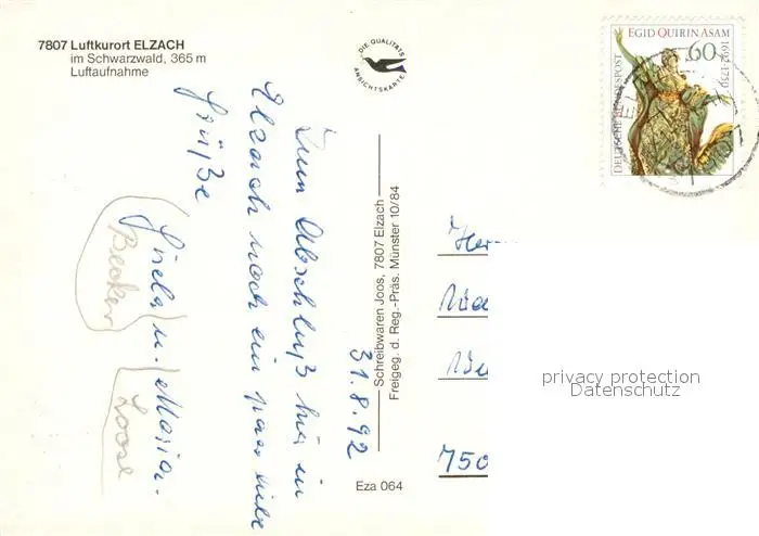 Elzach Fliegeraufnahme Elzach postalisch gelaufen 1992 Erhaltung siehe scans [WerneD78] WernPID7
