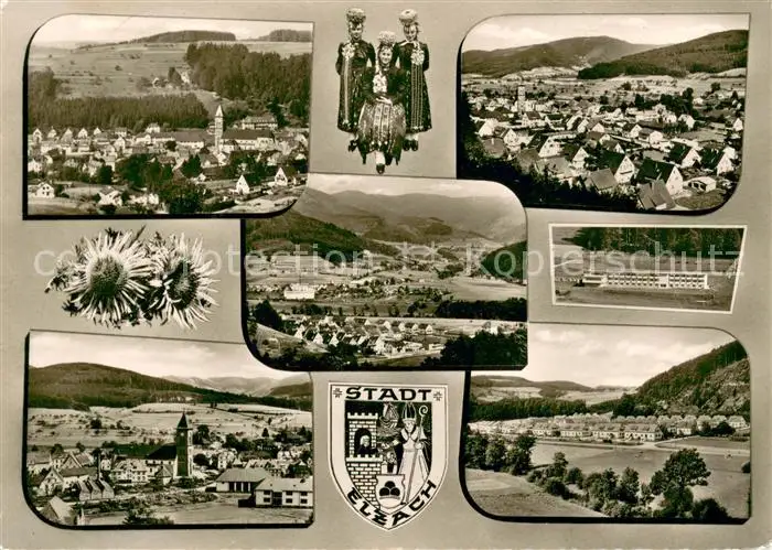 AK / Ansichtskarte Elzach Gesamtansicht Landschaftspanorama Schwarzwald Trachten Wappen Elzach