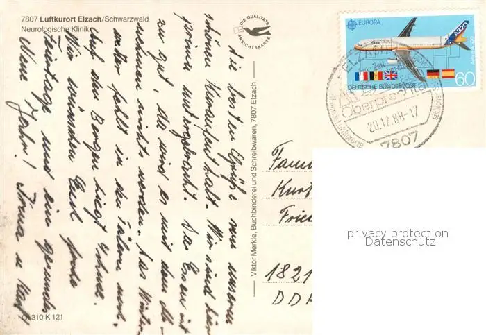 Elzach Neurologische Klinik Elzach postalisch gelaufen 1988 Erhaltung siehe scans [FriedD77] Frierer