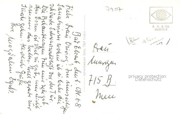 Elzach Sanatorium Speisesaal Aufenthaltsraum Eingangshalle Kneippbad Elzach postalisch gelaufen 1968 Erhaltung siehe scans [FriedD77] Frierer