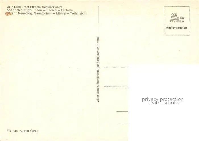 Elzach Schuttigbrunnen Stadtblick Elzfaelle Sanatorium Muehle Teilansicht Elzach postalisch nicht gelaufen nach 1965 Erhaltung siehe scans [WerneD78] WernPID7
